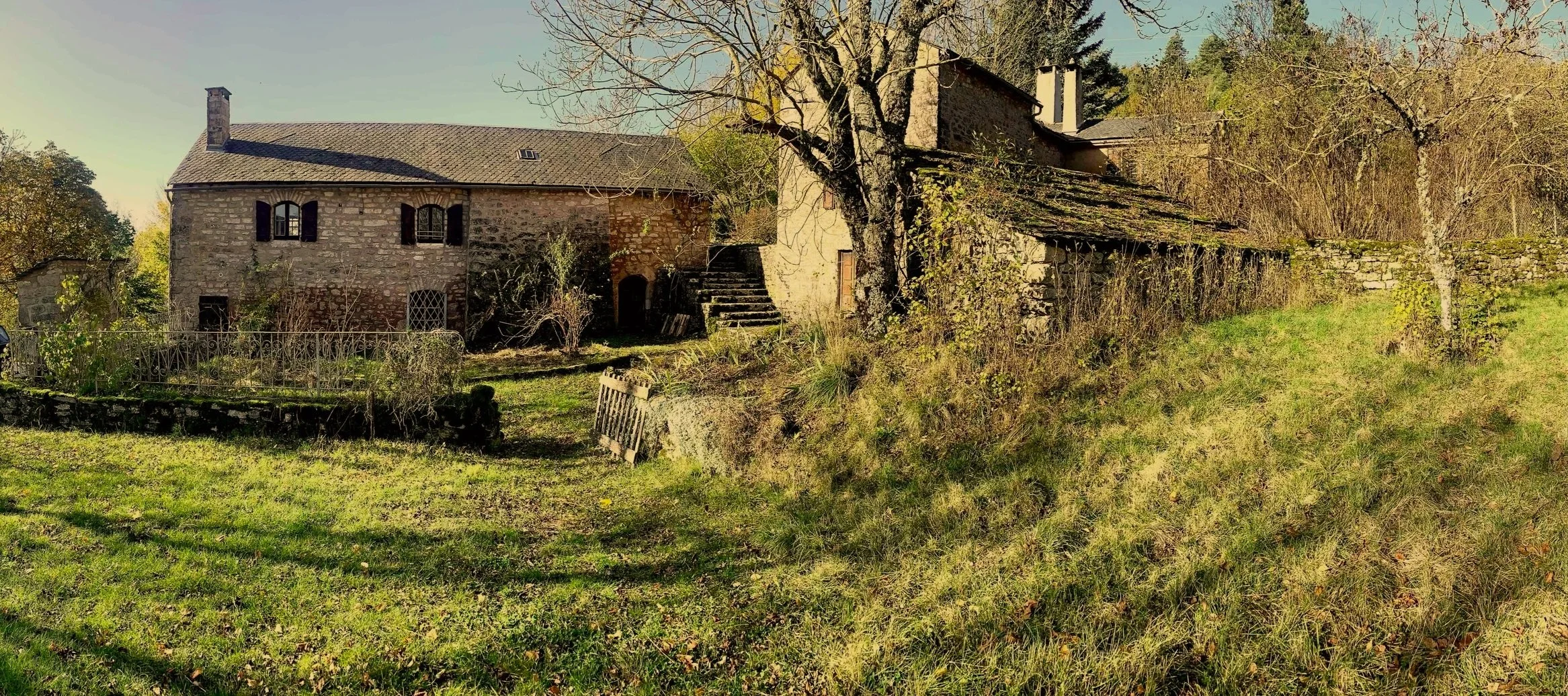 Une ancienne ferme et sa grange, séparées par une aire de battage, deviennent, dans la deuxième moitié du XXème siècle, le lieu d’habitation d’une famille venue de la ville. La grange est découpée en petites pièces, chambres et salon, pour accueillir les enfants grandissants et leurs familles. L'espace ne suffit bientôt plus et une nouvelle maison est construite dans les années 1990 à l'arrière du verger.